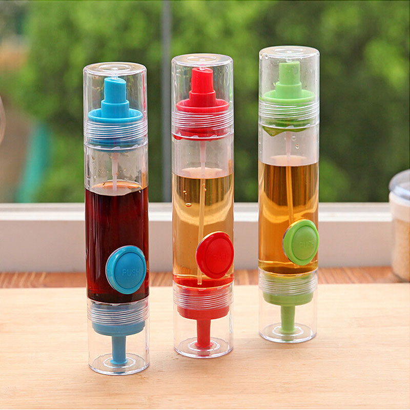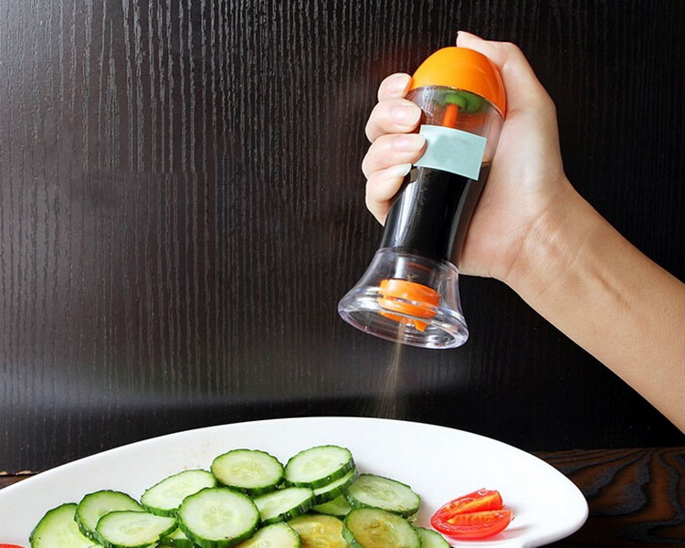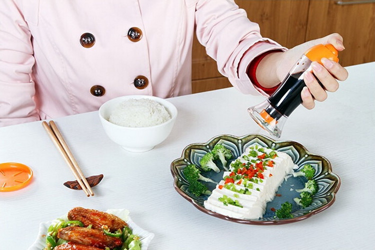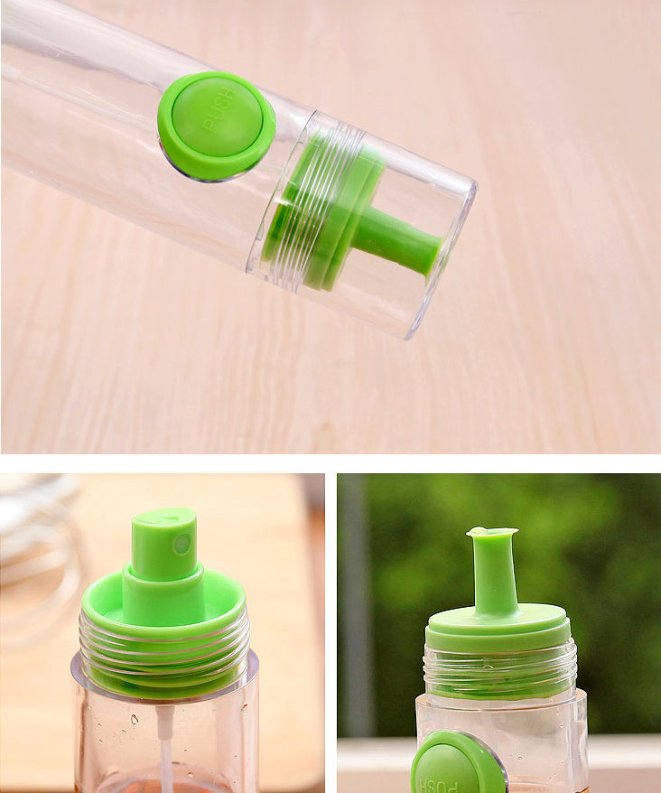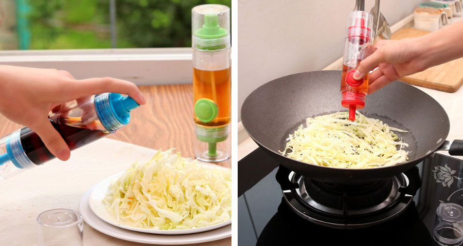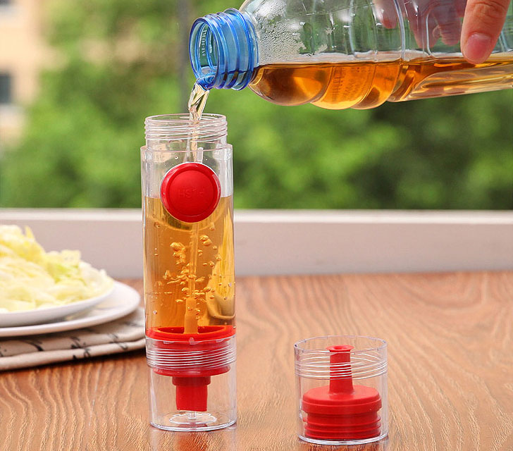 Thiết kế thông minh này tích hợp hai chức năng trong một chiếc lọ đơn giản. Một đầu để rót chất lỏng, đầu kia lại biến nó thành chiếc bình xịt phun sương tùy theo mục đích sử dụng của bà nội trợ. Ở phần rót còn có nút “push” để bạn kiểm soát lượng chảy dễ dàng hơn. Dụng cụ thiết kế nhỏ gọn, vừa vặn tay cầm, được làm bằng nhựa PP và silicone, kích thước 8.5 x 4.5cm. Những chiếc lọ có ba màu xanh lá, xanh dương và đỏ để bạn chọn lựa. Giá thành chỉ khoảng 18.000 đồng/chiếc.