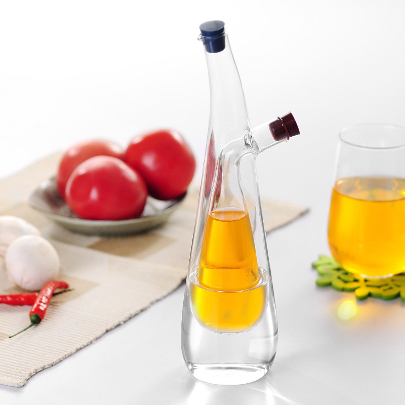 Cuối cùng là bộ lọ đựng nước chấm, dầu ăn,… bằng thủy tinh trong suốt, “đẹp từng cen-ti-met” dành cho những ai yêu thích thiết kế ấn tượng đầy tính thẩm mỹ. Những chiếc lọ lấy cảm hứng từ các phòng thí nghiệm hóa học, với đường nét uyển chuyển, mảnh mai cùng thiết kế “2 trong 1” hữu ích. Trong cùng một chiếc lọ với hai đầu chảy riêng biệt bạn có thể chứa hai loại chất lỏng, màu sắc khác nhau của chúng sẽ làm dụng cụ này nổi bật hơn trong căn bếp. Bộ lọ bao gồm 3 mẫu, giá thành khoảng 20.000 đồng/chiếc. Bạn có thể sưu tập đủ bộ để trang trí cho góc nấu nướng thêm xinh đấy!